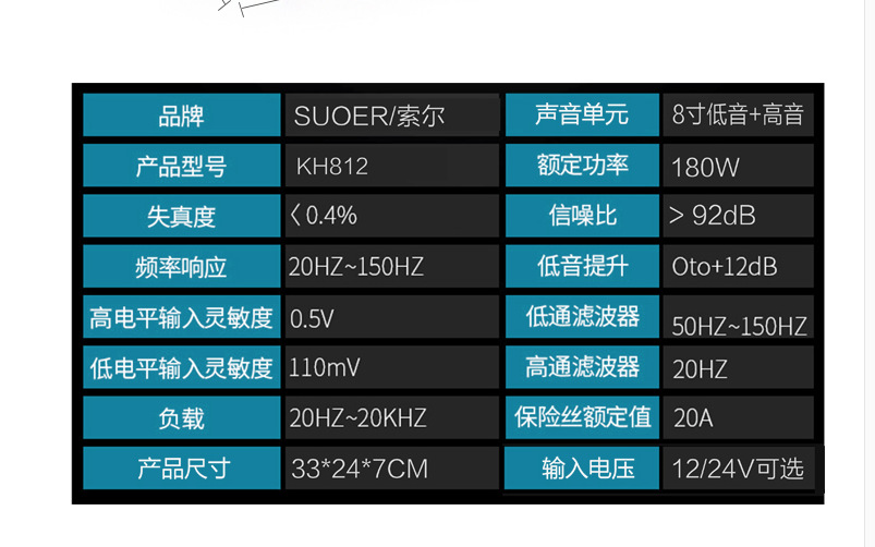 本网页所展示的有关【索尔车载12v/24V带高音超薄毛绒低音炮_汽车影音娱乐_广州市索尔汽车用品有限公司】的信息/图片/参数等由全球零部件网的会员【广州市索尔汽车用品有限公司】提供,由全球零部件网会员【广州市索尔汽车用品有限公司】自行对信息/图片/参数等的真实性、准确性和合法性负责,本平台(本网站)仅提供展示服务,请谨慎交易,因交易而产生的法律关系及法律纠纷由您自行协商解决,本平台(本网站)对此不承担任何责任。您在本网页可以浏览【索尔车载12v/24V带高音超薄毛绒低音炮_汽车影音娱乐_广州市索尔汽车用品有限公司】有关的信息/图片/价格等及提供【索尔车载12v/24V带高音超薄毛绒低音炮_汽车影音娱乐_广州市索尔汽车用品有限公司】的商家公司简介、江南(中国)等信息。