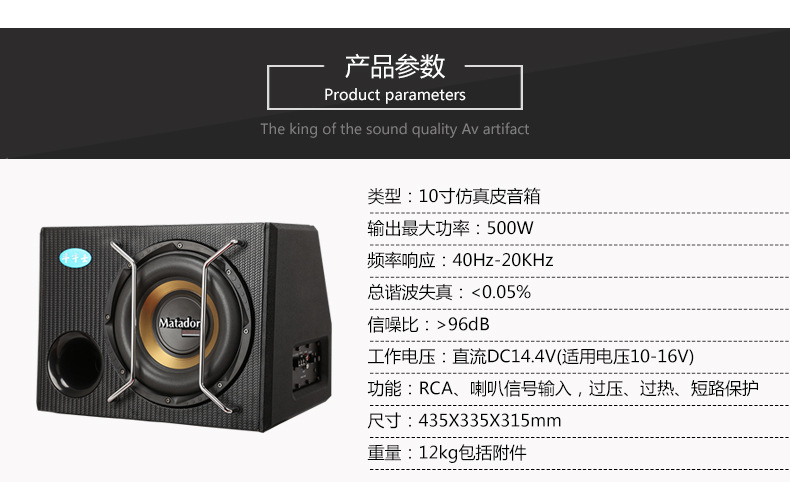 本网页所展示的有关【厂家直销汽车低音炮N1008 10寸车载低音炮 汽车功放重低音_汽车影音娱乐_佛山市斗牛士影音科技有限公司】的信息/图片/参数等由全球零部件网的会员【佛山市斗牛士影音科技有限公司】提供,由全球零部件网会员【佛山市斗牛士影音科技有限公司】自行对信息/图片/参数等的真实性、准确性和合法性负责,本平台(本网站)仅提供展示服务,请谨慎交易,因交易而产生的法律关系及法律纠纷由您自行协商解决,本平台(本网站)对此不承担任何责任。您在本网页可以浏览【厂家直销汽车低音炮N1008 10寸车载低音炮 汽车功放重低音_汽车影音娱乐_佛山市斗牛士影音科技有限公司】有关的信息/图片/价格等及提供【厂家直销汽车低音炮N1008 10寸车载低音炮 汽车功放重低音_汽车影音娱乐_佛山市斗牛士影音科技有限公司】的商家公司简介、江南(中国)等信息。