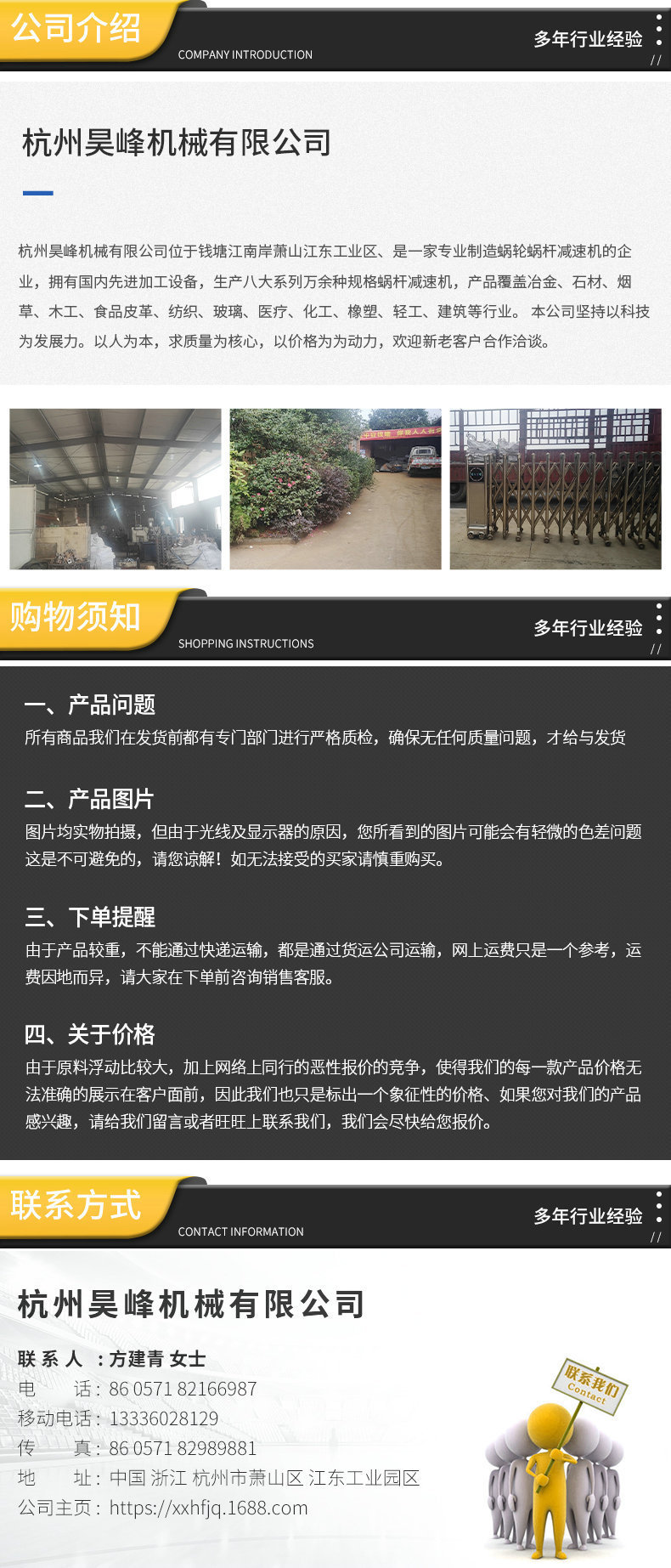 本网页所展示的有关【杭州萧山厂家供应 WPA蜗轮蜗杆减速机 减速机厂家批发_液压减速机_杭州昊峰机械有限公司】的信息/图片/参数等由全球零部件网的会员【杭州昊峰机械有限公司】提供,由全球零部件网会员【杭州昊峰机械有限公司】自行对信息/图片/参数等的真实性、准确性和合法性负责,本平台(本网站)仅提供展示服务,请谨慎交易,因交易而产生的法律关系及法律纠纷由您自行协商解决,本平台(本网站)对此不承担任何责任。您在本网页可以浏览【杭州萧山厂家供应 WPA蜗轮蜗杆减速机 减速机厂家批发_液压减速机_杭州昊峰机械有限公司】有关的信息/图片/价格等及提供【杭州萧山厂家供应 WPA蜗轮蜗杆减速机 减速机厂家批发_液压减速机_杭州昊峰机械有限公司】的商家公司简介、江南(中国)等信息。