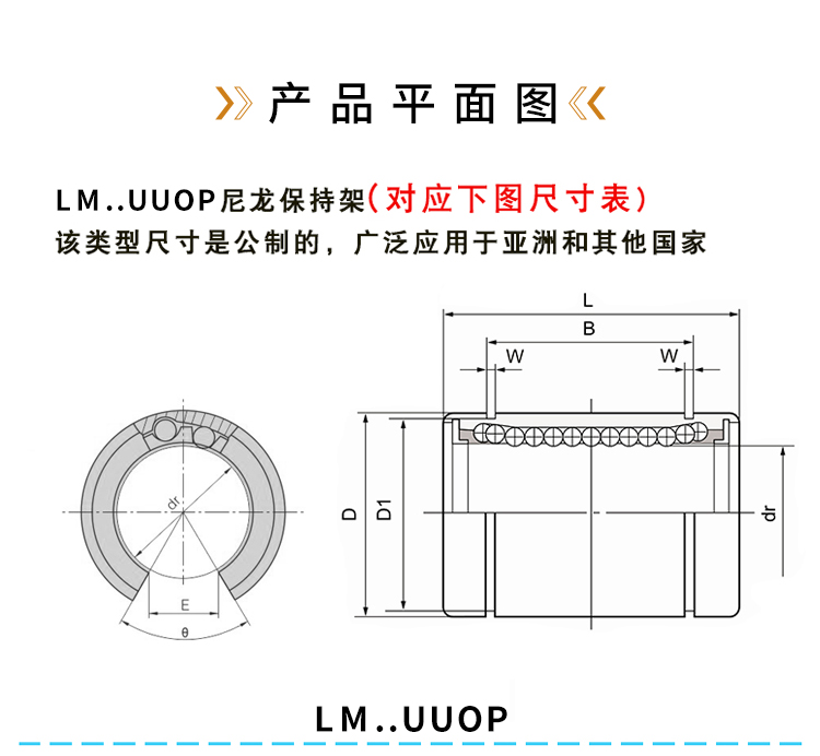 内径LM12UU-OP,LM16UU-OP,LM20UU-OP,LM25UU-OP,LM30UU-OP,LM35UU-OP,LM40UU-OP(mm)