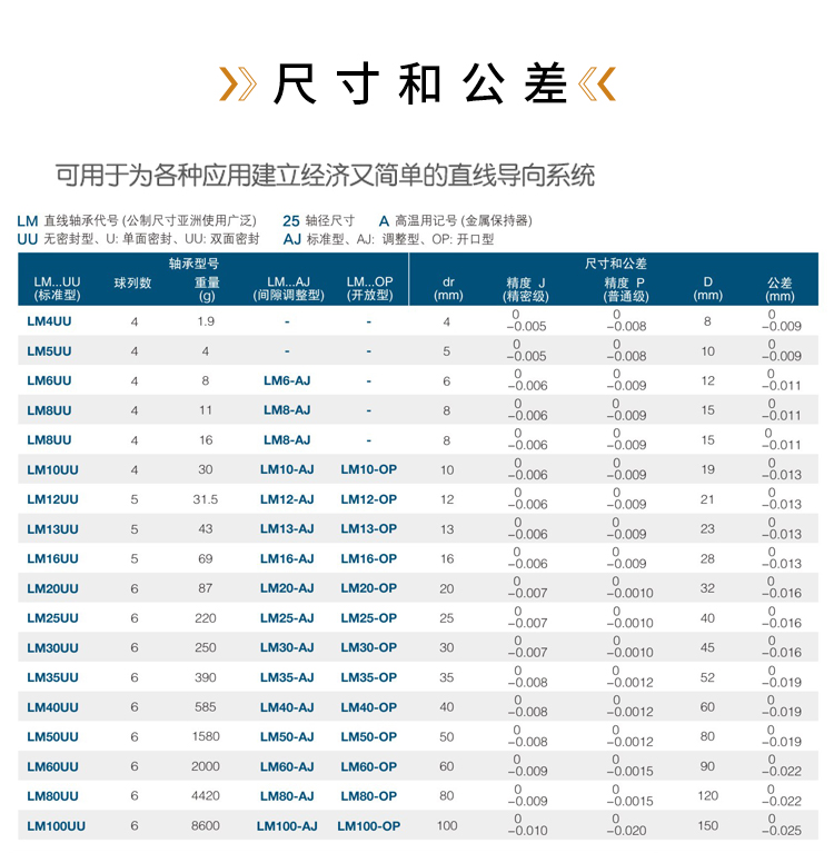 LM12UU-OP,LM16UU-OP,LM20UU-OP,LM25UU-OP,LM30UU-OP,LM35UU-OP,LM40UU-OP