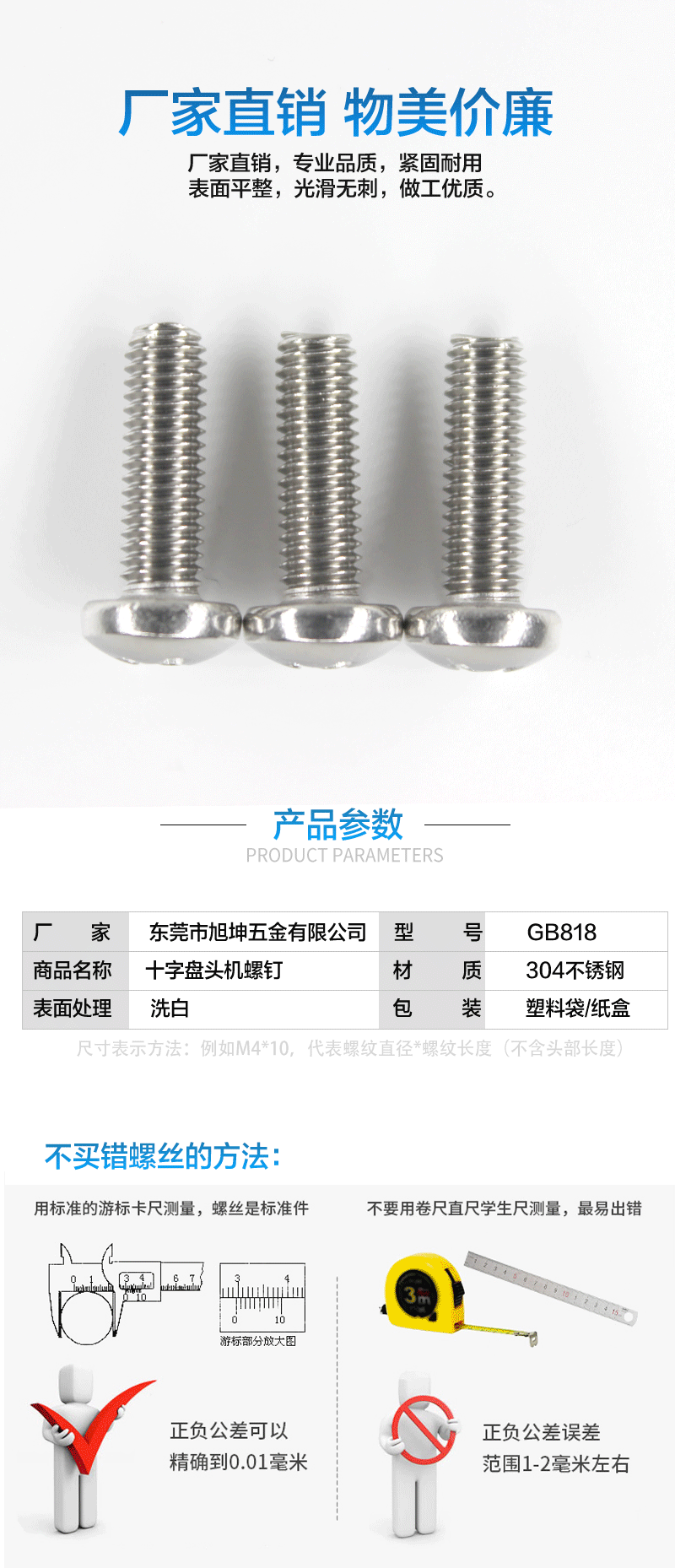 本网页所展示的有关【【M3 M4 M5】304不锈钢螺丝十字槽圆头螺钉 螺栓盘头螺丝 GB818_螺丝_东莞市旭坤五金有限公司】的信息/图片/参数等由全球零部件网的会员【东莞市旭坤五金有限公司】提供,由全球零部件网会员【东莞市旭坤五金有限公司】自行对信息/图片/参数等的真实性、准确性和合法性负责,本平台(本网站)仅提供展示服务,请谨慎交易,因交易而产生的法律关系及法律纠纷由您自行协商解决,本平台(本网站)对此不承担任何责任。您在本网页可以浏览【【M3 M4 M5】304不锈钢螺丝十字槽圆头螺钉 螺栓盘头螺丝 GB818_螺丝_东莞市旭坤五金有限公司】有关的信息/图片/价格等及提供【【M3 M4 M5】304不锈钢螺丝十字槽圆头螺钉 螺栓盘头螺丝 GB818_螺丝_东莞市旭坤五金有限公司】的商家公司简介、江南(中国)等信息。