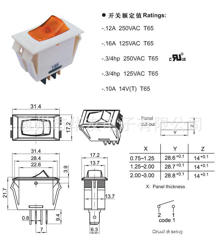 (1)QBK-AA系列船型开关,按钮颜色及印字可定制。