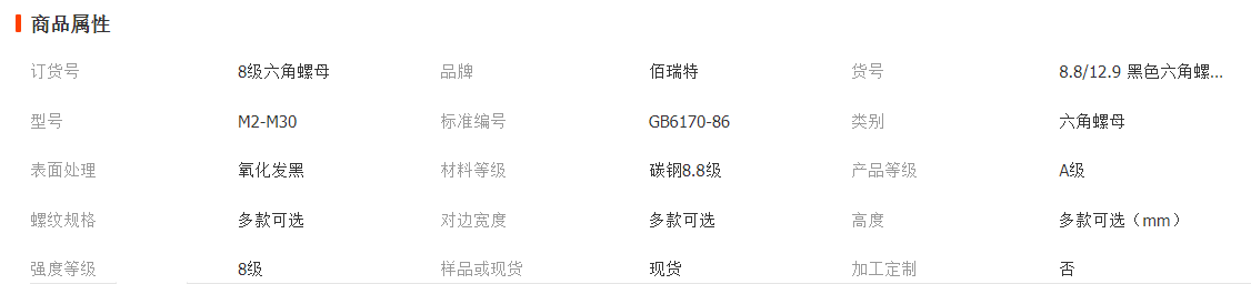 | 名称 | 六角螺母 | 表面处理 | 发黑 |