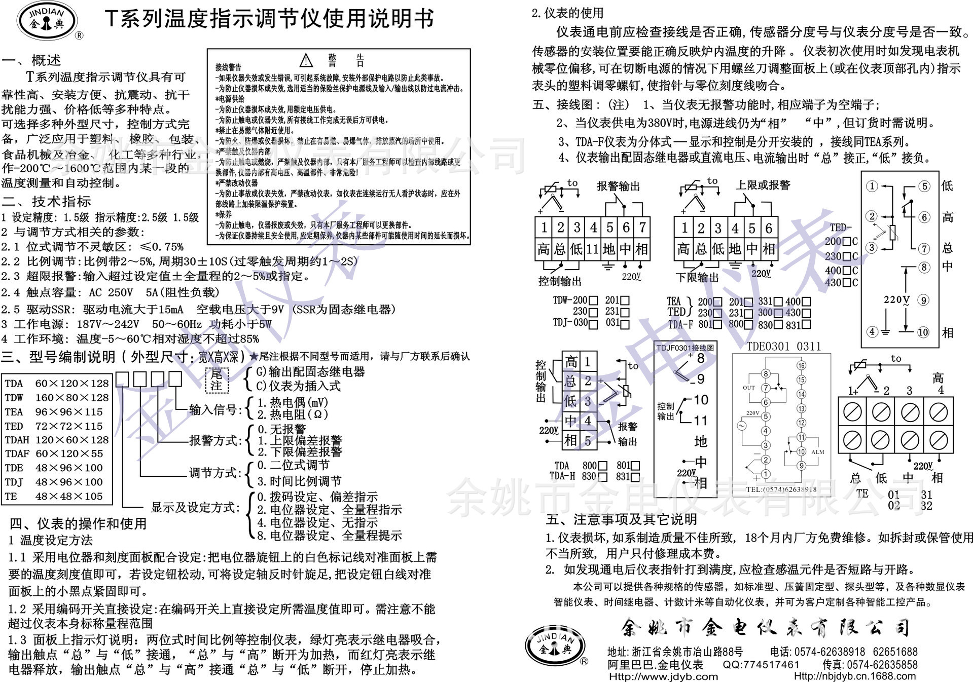 余姚市金电仪表有限公司成立于1997年,是浙江省内一家专业研发生产工控仪器、智能仪表的企业,公司座落于历史悠久的文明古城既仪表之乡——余姚。公司在汲取国内外先进技术和工艺的基础上,集二十几年来在仪表行业的智慧和经验,产品的精度、稳定性、可靠性均逐年攀升。公司不仅拥有进口高速贴片机、AOI自动检测仪器等先进的生产检测设备,还拥有一支创新能力强、技术精湛匠心研发的生产和销售服务团队;主要从事智能仪器仪表、工控系统的研发、生产和销售,在国内工业自动化技术领域潜心钻研二十几载。目前主要产品包括系列无纸记录仪、智能数显控制仪、智能计数计米控制仪、智能调压稳压器、温湿度控制仪、多功能工业控制仪、时间继电器、过程控制记录仪、智能流量积算控制仪、变频调速器、直流电机控制器、励磁电机控制器、茶叶机械全自动控制器、液晶屏触摸屏多功能智能一体机、可带485通讯USB转存功能、传感器及变送器等等。产品以其性能稳定,质量可靠,功能强大,操作方便,性价比高及完善的服务而享誉市场,目前已在国内多个城市设有经销点,部分产品远销中东,欧美市场。