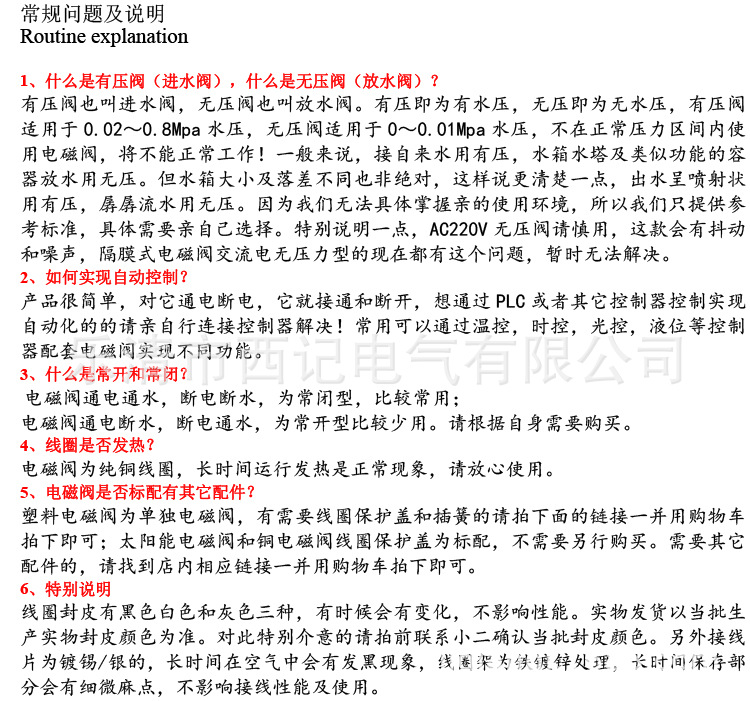 本网页所展示的有关【太阳能电磁阀 热水器上水电磁阀 太阳能进水电磁阀 AC220V DC12V_电磁阀_乐清市西记电气有限公司】的信息/图片/参数等由全球零部件网的会员【乐清市西记电气有限公司】提供,由全球零部件网会员【乐清市西记电气有限公司】自行对信息/图片/参数等的真实性、准确性和合法性负责,本平台(本网站)仅提供展示服务,请谨慎交易,因交易而产生的法律关系及法律纠纷由您自行协商解决,本平台(本网站)对此不承担任何责任。您在本网页可以浏览【太阳能电磁阀 热水器上水电磁阀 太阳能进水电磁阀 AC220V DC12V_电磁阀_乐清市西记电气有限公司】有关的信息/图片/价格等及提供【太阳能电磁阀 热水器上水电磁阀 太阳能进水电磁阀 AC220V DC12V_电磁阀_乐清市西记电气有限公司】的商家公司简介、江南(中国)等信息。