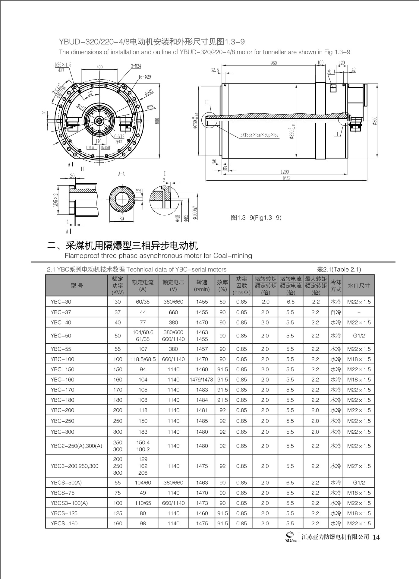 | The dimensions of installation and outline of YBUD-320/220-4/8 motor for tunneller are shown in Fig 1.3-12 |
