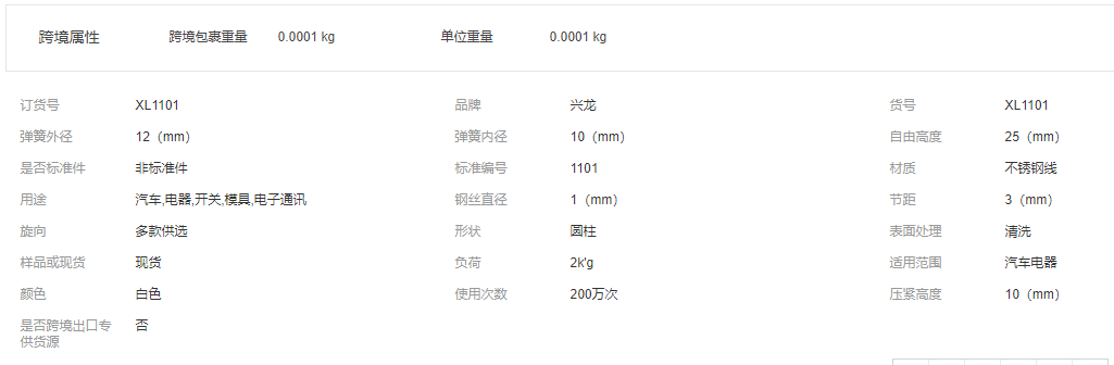 本网页所展示的有关【非标定做 异形不锈钢压缩弹簧 压簧 扭簧 玩具五金配件拉伸弹簧_压缩弹簧_天津兴龙弹簧制造有限公司】的信息/图片/参数等由全球零部件网的会员【天津兴龙弹簧制造有限公司】提供,由全球零部件网会员【天津兴龙弹簧制造有限公司】自行对信息/图片/参数等的真实性、准确性和合法性负责,本平台(本网站)仅提供展示服务,请谨慎交易,因交易而产生的法律关系及法律纠纷由您自行协商解决,本平台(本网站)对此不承担任何责任。您在本网页可以浏览【非标定做 异形不锈钢压缩弹簧 压簧 扭簧 玩具五金配件拉伸弹簧_压缩弹簧_天津兴龙弹簧制造有限公司】有关的信息/图片/价格等及提供【非标定做 异形不锈钢压缩弹簧 压簧 扭簧 玩具五金配件拉伸弹簧_压缩弹簧_天津兴龙弹簧制造有限公司】的商家公司简介、江南(中国)等信息。