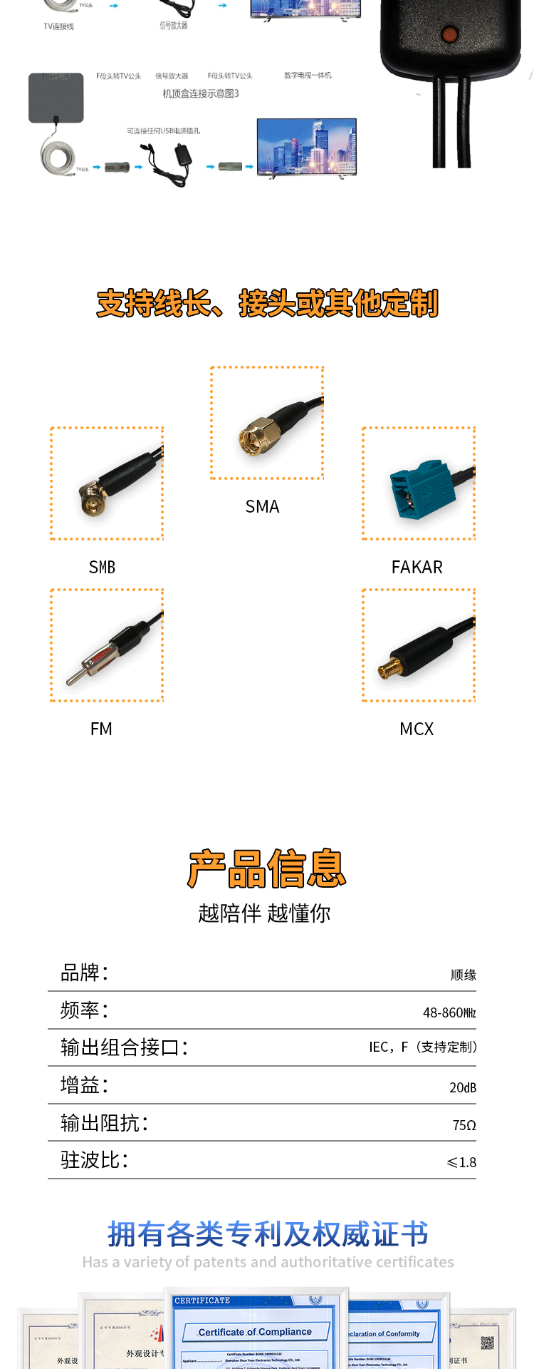 本网页所展示的有关【可定制各类平板电视天线室内数字地面波高清4K放大器信号加强器_其它通用配件_深圳市顺缘电子科技有限公司】的信息/图片/参数等由全球零部件网的会员【深圳市顺缘电子科技有限公司】提供,由全球零部件网会员【深圳市顺缘电子科技有限公司】自行对信息/图片/参数等的真实性、准确性和合法性负责,本平台(本网站)仅提供展示服务,请谨慎交易,因交易而产生的法律关系及法律纠纷由您自行协商解决,本平台(本网站)对此不承担任何责任。您在本网页可以浏览【可定制各类平板电视天线室内数字地面波高清4K放大器信号加强器_其它通用配件_深圳市顺缘电子科技有限公司】有关的信息/图片/价格等及提供【可定制各类平板电视天线室内数字地面波高清4K放大器信号加强器_其它通用配件_深圳市顺缘电子科技有限公司】的商家公司简介、江南(中国)等信息。