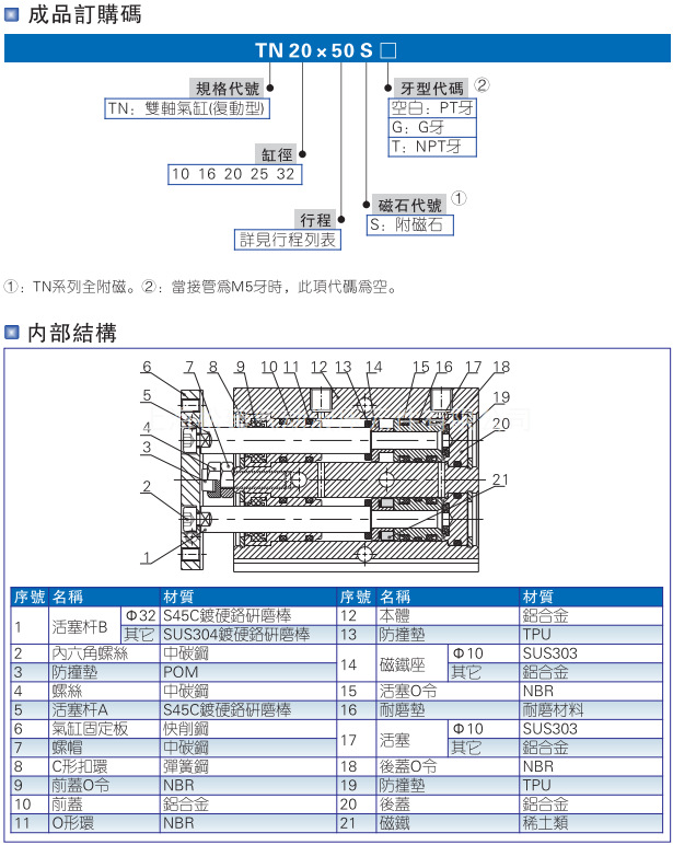 本网页所展示的有关【AirTAC原装亚德客双轴气缸 TN20x10S TN20x20S TN20x25S TN20X3 0S_气缸及配件_上海松臻气动液压元件有限公司】的信息/图片/参数等由全球零部件网的会员【上海松臻气动液压元件有限公司】提供,由全球零部件网会员【上海松臻气动液压元件有限公司】自行对信息/图片/参数等的真实性、准确性和合法性负责,本平台(本网站)仅提供展示服务,请谨慎交易,因交易而产生的法律关系及法律纠纷由您自行协商解决,本平台(本网站)对此不承担任何责任。您在本网页可以浏览【AirTAC原装亚德客双轴气缸 TN20x10S TN20x20S TN20x25S TN20X3 0S_气缸及配件_上海松臻气动液压元件有限公司】有关的信息/图片/价格等及提供【AirTAC原装亚德客双轴气缸 TN20x10S TN20x20S TN20x25S TN20X3 0S_气缸及配件_上海松臻气动液压元件有限公司】的商家公司简介、江南(中国)等信息。