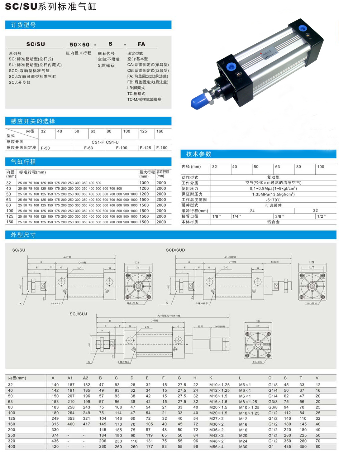 SCJ:双轴可调型标准气缸 - SCT:分步气缸 如:SCT5050X25
