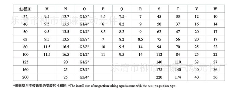 气缸主要技术参数