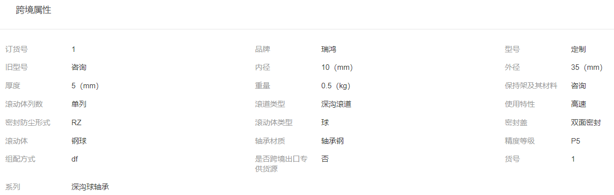 本网页所展示的有关【单列碳钢深沟球轴承6000 6001 6002RS/ZZ 低速玩具脚轮门窗轴承_深沟球轴承_河北瑞鸿轴承制造有限公司】的信息/图片/参数等由全球零部件网的会员【河北瑞鸿轴承制造有限公司】提供,由全球零部件网会员【河北瑞鸿轴承制造有限公司】自行对信息/图片/参数等的真实性、准确性和合法性负责,本平台(本网站)仅提供展示服务,请谨慎交易,因交易而产生的法律关系及法律纠纷由您自行协商解决,本平台(本网站)对此不承担任何责任。您在本网页可以浏览【单列碳钢深沟球轴承6000 6001 6002RS/ZZ 低速玩具脚轮门窗轴承_深沟球轴承_河北瑞鸿轴承制造有限公司】有关的信息/图片/价格等及提供【单列碳钢深沟球轴承6000 6001 6002RS/ZZ 低速玩具脚轮门窗轴承_深沟球轴承_河北瑞鸿轴承制造有限公司】的商家公司简介、江南(中国)等信息。