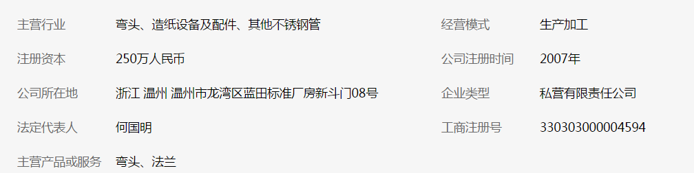 本网页所展示的有关【供应生产厂家 供应不锈钢对焊管件_管材及管接头_温州国泰管件制造有限公司】的信息/图片/参数等由全球零部件网的会员【温州国泰管件制造有限公司】提供,由全球零部件网会员【温州国泰管件制造有限公司】自行对信息/图片/参数等的真实性、准确性和合法性负责,本平台(本网站)仅提供展示服务,请谨慎交易,因交易而产生的法律关系及法律纠纷由您自行协商解决,本平台(本网站)对此不承担任何责任。您在本网页可以浏览【供应生产厂家 供应不锈钢对焊管件_管材及管接头_温州国泰管件制造有限公司】有关的信息/图片/价格等及提供【供应生产厂家 供应不锈钢对焊管件_管材及管接头_温州国泰管件制造有限公司】的商家公司简介、江南(中国)等信息。