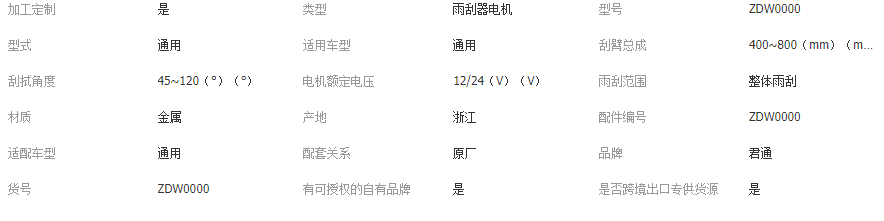 本网页所展示的有关【雨刮电机 雨刮器电机 刮水电机 雨刮系统_雨刷系统_瑞安市君通机电有限公司】的信息/图片/参数等由全球零部件网的会员【瑞安市君通机电有限公司】提供,由全球零部件网会员【瑞安市君通机电有限公司】自行对信息/图片/参数等的真实性、准确性和合法性负责,本平台(本网站)仅提供展示服务,请谨慎交易,因交易而产生的法律关系及法律纠纷由您自行协商解决,本平台(本网站)对此不承担任何责任。您在本网页可以浏览【雨刮电机 雨刮器电机 刮水电机 雨刮系统_雨刷系统_瑞安市君通机电有限公司】有关的信息/图片/价格等及提供【雨刮电机 雨刮器电机 刮水电机 雨刮系统_雨刷系统_瑞安市君通机电有限公司】的商家公司简介、江南(中国)等信息。