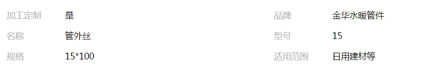 本网页所展示的有关【金华水暖管件管外丝_紧固件_金华水暖管件有限公司】的信息/图片/参数等由全球零部件网的会员【金华水暖管件有限公司】提供,由全球零部件网会员【金华水暖管件有限公司】自行对信息/图片/参数等的真实性、准确性和合法性负责,本平台(本网站)仅提供展示服务,请谨慎交易,因交易而产生的法律关系及法律纠纷由您自行协商解决,本平台(本网站)对此不承担任何责任。您在本网页可以浏览【金华水暖管件管外丝_紧固件_金华水暖管件有限公司】有关的信息/图片/价格等及提供【金华水暖管件管外丝_紧固件_金华水暖管件有限公司】的商家公司简介、江南(中国)等信息。