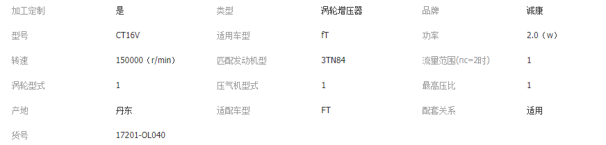 立即发布求购意向本网页所展示的有关【CT16V 1KD 17201-30110 涡轮增压器 17201-OL040_涡轮增压器及相关零件_凤城市诚康汽配经营部】的信息/图片/参数等由全球零部件网的会员【凤城市诚康汽配经营部】提供,由全球零部件网会员【凤城市诚康汽配经营部】自行对信息/图片/参数等的真实性、准确性和合法性负责,本平台(本网站)仅提供展示服务,请谨慎交易,因交易而产生的法律关系及法律纠纷由您自行协商解决,本平台(本网站)对此不承担任何责任。您在本网页可以浏览【CT16V 1KD 17201-30110 涡轮增压器 17201-OL040_涡轮增压器及相关零件_凤城市诚康汽配经营部】有关的信息/图片/价格等及提供【CT16V 1KD 17201-30110 涡轮增压器 17201-OL040_涡轮增压器及相关零件_凤城市诚康汽配经营部】的商家公司简介、江南(中国)等信息。