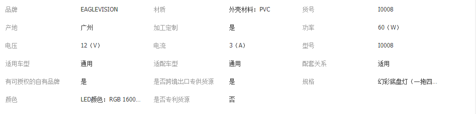 本网页所展示的有关【RGB幻彩汽车底盘灯音乐节奏灯汽车车载氛围灯汽车底盘气氛灯 跨境_摩托车配件_广州鹰视界电子科技有限公司】的信息/图片/参数等由全球零部件网的会员【广州鹰视界电子科技有限公司】提供,由全球零部件网会员【广州鹰视界电子科技有限公司】自行对信息/图片/参数等的真实性、准确性和合法性负责,本平台(本网站)仅提供展示服务,请谨慎交易,因交易而产生的法律关系及法律纠纷由您自行协商解决,本平台(本网站)对此不承担任何责任。您在本网页可以浏览【RGB幻彩汽车底盘灯音乐节奏灯汽车车载氛围灯汽车底盘气氛灯 跨境_摩托车配件_广州鹰视界电子科技有限公司】有关的信息/图片/价格等及提供【RGB幻彩汽车底盘灯音乐节奏灯汽车车载氛围灯汽车底盘气氛灯 跨境_摩托车配件_广州鹰视界电子科技有限公司】的商家公司简介、江南(中国)等信息。
