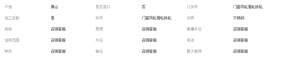 本网页所展示的有关【门窗吊轮滑轮铁轮_滑轮_佛山市沃科特轴承滑轮有限公司】的信息/图片/参数等由全球零部件网的会员【佛山市沃科特轴承滑轮有限公司】提供,由全球零部件网会员【佛山市沃科特轴承滑轮有限公司】自行对信息/图片/参数等的真实性、准确性和合法性负责,本平台(本网站)仅提供展示服务,请谨慎交易,因交易而产生的法律关系及法律纠纷由您自行协商解决,本平台(本网站)对此不承担任何责任。您在本网页可以浏览【门窗吊轮滑轮铁轮_滑轮_佛山市沃科特轴承滑轮有限公司】有关的信息/图片/价格等及提供【门窗吊轮滑轮铁轮_滑轮_佛山市沃科特轴承滑轮有限公司】的商家公司简介、江南(中国)等信息。