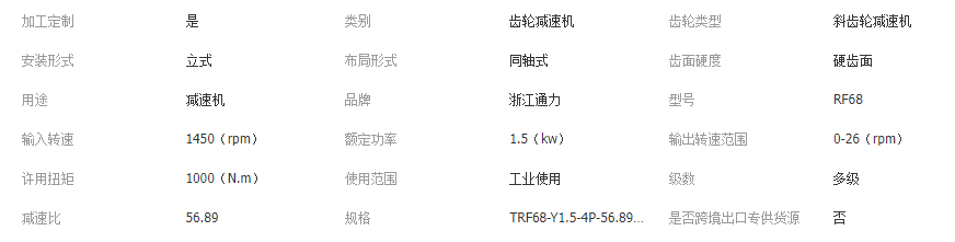 此减速机不含电机,价格含16%增值税,含到福州物流运费。交货期为拍下后30天发货。质保期1年,由浙江通力提供国内质保。