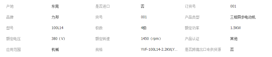 本网页所展示的有关【力邦2.2KW变频电机 机械设备调速电机 二级能效交流变频电机_交流电机_东莞市力邦机电有限公司】的信息/图片/参数等由全球零部件网的会员【东莞市力邦机电有限公司】提供,由全球零部件网会员【东莞市力邦机电有限公司】自行对信息/图片/参数等的真实性、准确性和合法性负责,本平台(本网站)仅提供展示服务,请谨慎交易,因交易而产生的法律关系及法律纠纷由您自行协商解决,本平台(本网站)对此不承担任何责任。您在本网页可以浏览【力邦2.2KW变频电机 机械设备调速电机 二级能效交流变频电机_交流电机_东莞市力邦机电有限公司】有关的信息/图片/价格等及提供【力邦2.2KW变频电机 机械设备调速电机 二级能效交流变频电机_交流电机_东莞市力邦机电有限公司】的商家公司简介、江南(中国)等信息。