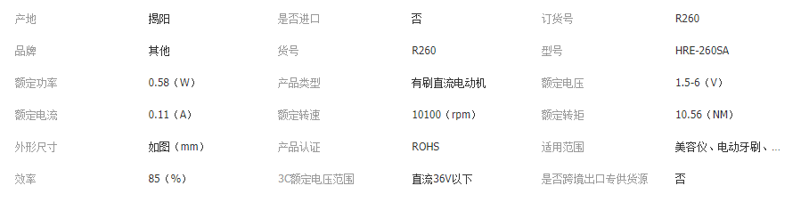 本网页所展示的有关【R260美容仪微型电机 3V6V高速直流静音马达 剃须刀电动牙刷微电机_直流电机_揭阳市榕城区恒兴电机有限公司】的信息/图片/参数等由全球零部件网的会员【揭阳市榕城区恒兴电机有限公司】提供,由全球零部件网会员【揭阳市榕城区恒兴电机有限公司】自行对信息/图片/参数等的真实性、准确性和合法性负责,本平台(本网站)仅提供展示服务,请谨慎交易,因交易而产生的法律关系及法律纠纷由您自行协商解决,本平台(本网站)对此不承担任何责任。您在本网页可以浏览【R260美容仪微型电机 3V6V高速直流静音马达 剃须刀电动牙刷微电机_直流电机_揭阳市榕城区恒兴电机有限公司】有关的信息/图片/价格等及提供【R260美容仪微型电机 3V6V高速直流静音马达 剃须刀电动牙刷微电机_直流电机_揭阳市榕城区恒兴电机有限公司】的商家公司简介、江南(中国)等信息。