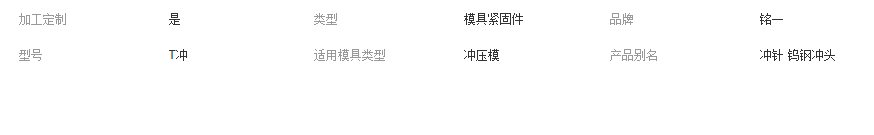 H型直身冲头、A型二级冲头、刃口成型冲头、K型抽芽冲头、B型引导冲头、A型子母冲头、凸模、凹模、衬套、高速钢圆棒、超微粒子钨钢圆棒、粉末高速钢圆棒、浮升销、浮料销、止付螺丝、定位销(固定销)、等高套筒、导柱、导套、精密级镀铬导柱、精密级铜钛合
