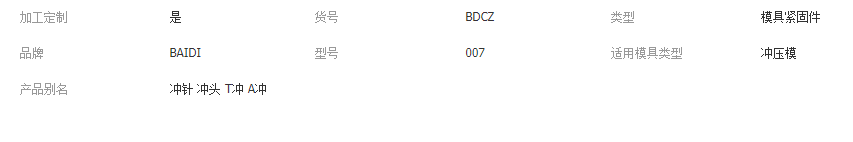 本网页所展示的有关【供应模具冲针不锈钢冲头 T冲A冲镶针非标定 制阀针型芯_冲头_东莞市百迪五金模具有限公司】的信息/图片/参数等由全球零部件网的会员【东莞市百迪五金模具有限公司】提供,由全球零部件网会员【东莞市百迪五金模具有限公司】自行对信息/图片/参数等的真实性、准确性和合法性负责,本平台(本网站)仅提供展示服务,请谨慎交易,因交易而产生的法律关系及法律纠纷由您自行协商解决,本平台(本网站)对此不承担任何责任。您在本网页可以浏览【供应模具冲针不锈钢冲头 T冲A冲镶针非标定 制阀针型芯_冲头_东莞市百迪五金模具有限公司】有关的信息/图片/价格等及提供【供应模具冲针不锈钢冲头 T冲A冲镶针非标定 制阀针型芯_冲头_东莞市百迪五金模具有限公司】的商家公司简介、江南(中国)等信息。