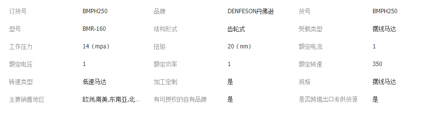 BMP(可替换OMP、尹屯H、M+S的ML HP)系列摆线液压马达是一种体积较小,经济型轴配流液压马达;采用整体式转定子付,结构紧凑、重量轻、功率密度大。其特点:整体式转定子付采用世界先进加工工艺,确保整机体积小、效率高、寿命长;轴密封承压高,可串并联使用,功率密度大。