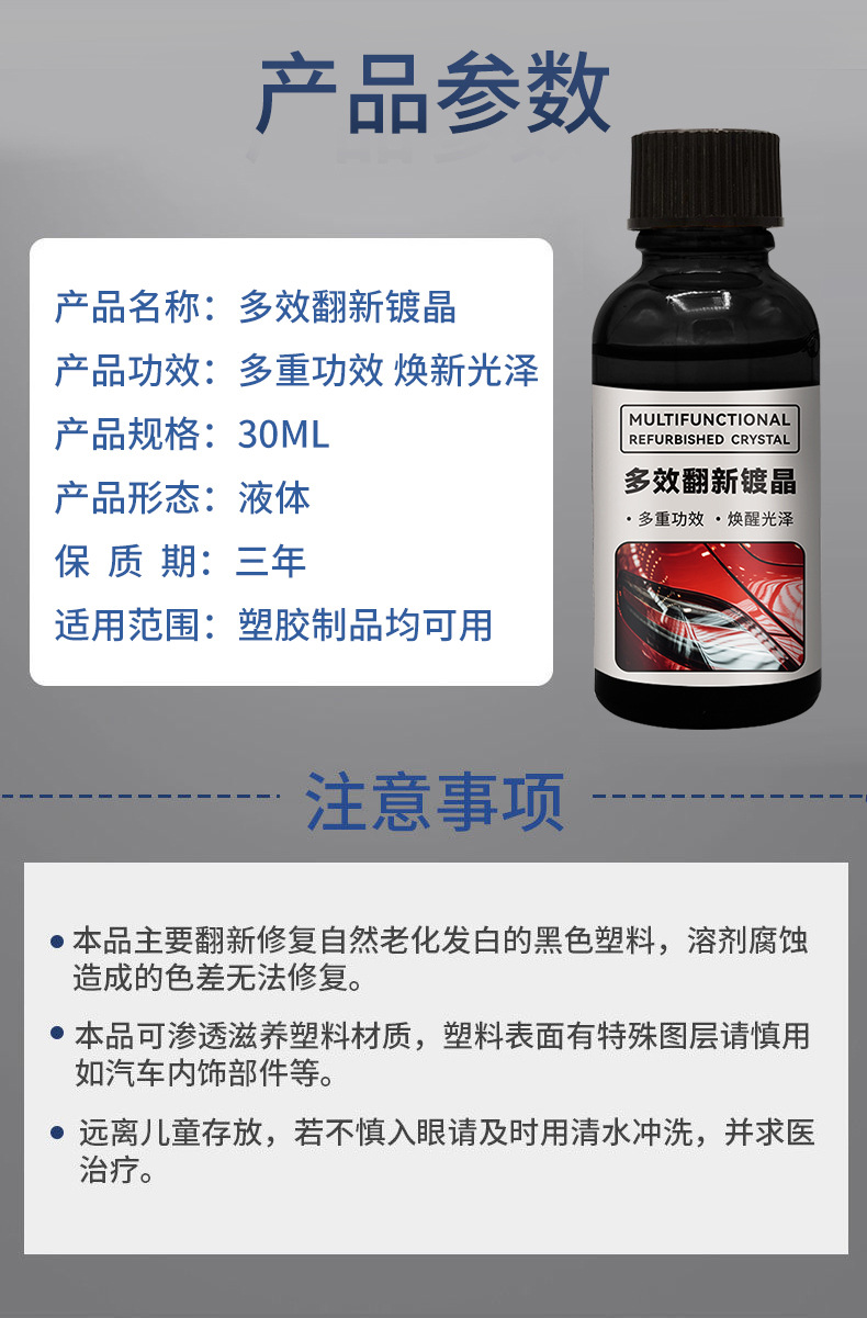 本网页所展示的有关【汽车塑料翻新剂还原剂划痕保险杠内饰发白老化镀晶修复剂汽车用品_洗车工具_临沂市鼎超商贸有限公司】的信息/图片/参数等由全球零部件网的会员【临沂市鼎超商贸有限公司】提供,由全球零部件网会员【临沂市鼎超商贸有限公司】自行对信息/图片/参数等的真实性、准确性和合法性负责,本平台(本网站)仅提供展示服务,请谨慎交易,因交易而产生的法律关系及法律纠纷由您自行协商解决,本平台(本网站)对此不承担任何责任。您在本网页可以浏览【汽车塑料翻新剂还原剂划痕保险杠内饰发白老化镀晶修复剂汽车用品_洗车工具_临沂市鼎超商贸有限公司】有关的信息/图片/价格等及提供【汽车塑料翻新剂还原剂划痕保险杠内饰发白老化镀晶修复剂汽车用品_洗车工具_临沂市鼎超商贸有限公司】的商家公司简介、江南(中国)等信息。