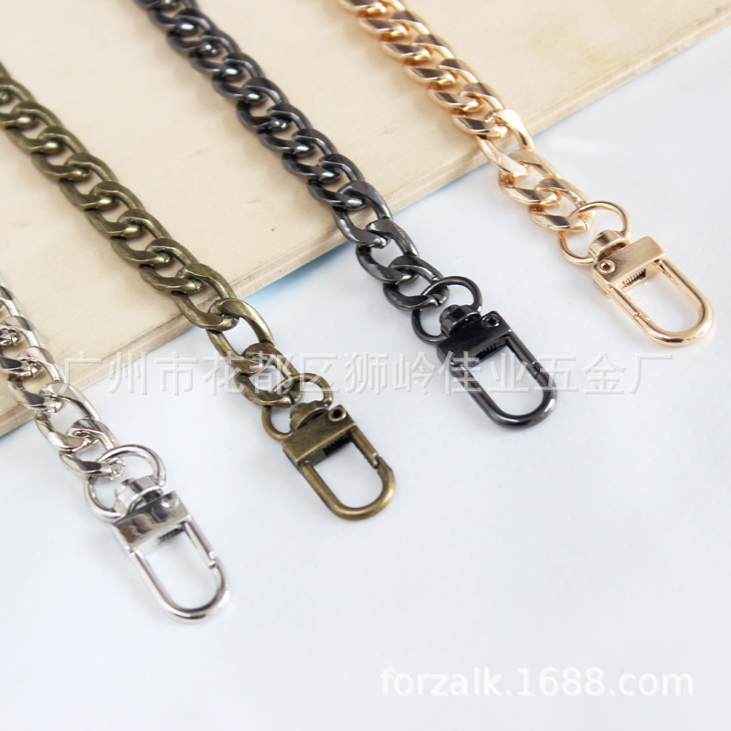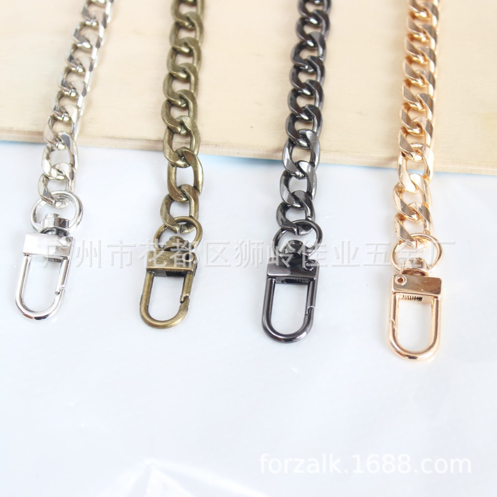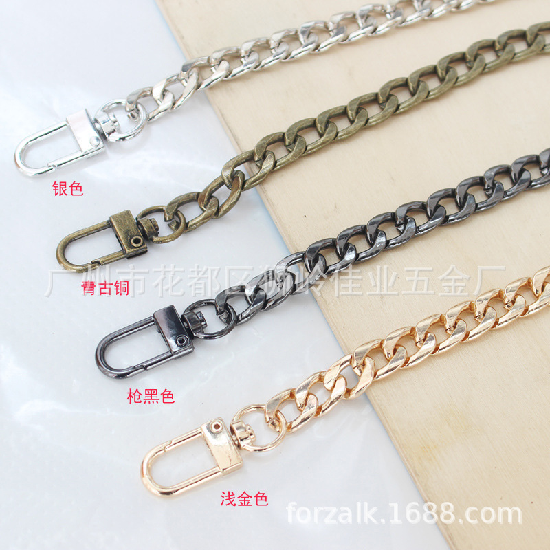 三、本店提供加工服务,你可以选好链条跟扣子及要剪的长度给客服,我们可以收加工费帮您加工成成品,如果有需要可以联系客服(加工需外发,发货时间会延后)。如果购买链条请看好算好长度,按米卖的是没加扣的。如果按条算的话都是一般都是两边加好扣子的。如果是手提一般为40-50cm,单肩一般为100cm,斜挎一般为110-120cm左右。以上只是推荐,因为个人身高及包包所到的位置不同,如果要准确的最好自己拿米尺量下哦。