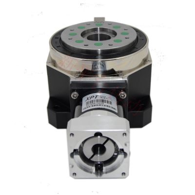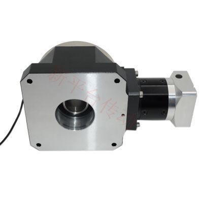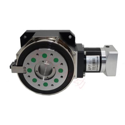 公司所生产的伺服旋转工作台均采用行星减速结构来增加传动力矩,减速比从3至1536,传动力矩高达2400NM,公司由此结构的伺服旋转平台具有低侧隙,低噪音,大传动力矩的特点,适用于速度,力矩有各种要求的场合。