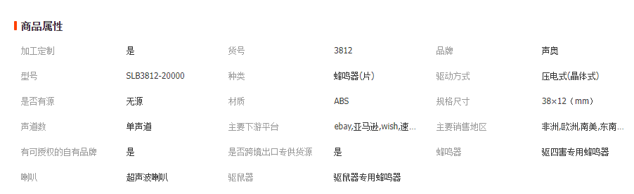 本网页所展示的有关【直径38超声波喇叭 无源蜂鸣器 四害专用超声波喇叭 超声波蜂鸣器_蜂鸣器_中山市声奥电子有限公司】的信息/图片/参数等由全球零部件网的会员【中山市声奥电子有限公司】提供,由全球零部件网会员【中山市声奥电子有限公司】自行对信息/图片/参数等的真实性、准确性和合法性负责,本平台(本网站)仅提供展示服务,请谨慎交易,因交易而产生的法律关系及法律纠纷由您自行协商解决,本平台(本网站)对此不承担任何责任。您在本网页可以浏览【直径38超声波喇叭 无源蜂鸣器 四害专用超声波喇叭 超声波蜂鸣器_蜂鸣器_中山市声奥电子有限公司】有关的信息/图片/价格等及提供【直径38超声波喇叭 无源蜂鸣器 四害专用超声波喇叭 超声波蜂鸣器_蜂鸣器_中山市声奥电子有限公司】的商家公司简介、江南(中国)等信息。
