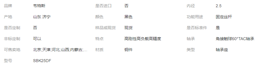 本网页所展示的有关【韦特斯支撑座 型号SBK25DF 重载轴承座 高负荷 高精度_轴承附件_山东韦特斯自动化科技有限公司】的信息/图片/参数等由全球零部件网的会员【山东韦特斯自动化科技有限公司】提供,由全球零部件网会员【山东韦特斯自动化科技有限公司】自行对信息/图片/参数等的真实性、准确性和合法性负责,本平台(本网站)仅提供展示服务,请谨慎交易,因交易而产生的法律关系及法律纠纷由您自行协商解决,本平台(本网站)对此不承担任何责任。您在本网页可以浏览【韦特斯支撑座 型号SBK25DF 重载轴承座 高负荷 高精度_轴承附件_山东韦特斯自动化科技有限公司】有关的信息/图片/价格等及提供【韦特斯支撑座 型号SBK25DF 重载轴承座 高负荷 高精度_轴承附件_山东韦特斯自动化科技有限公司】的商家公司简介、江南(中国)等信息。