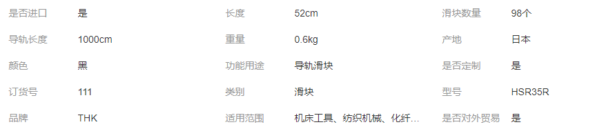 本网页所展示的有关【日本原装 THK直线导轨线轨滑块 HSR/HSH/15/20/25/30/35/AR_导轨_天津美斯特轴承有限公司】的信息/图片/参数等由全球零部件网的会员【天津美斯特轴承有限公司】提供,由全球零部件网会员【天津美斯特轴承有限公司】自行对信息/图片/参数等的真实性、准确性和合法性负责,本平台(本网站)仅提供展示服务,请谨慎交易,因交易而产生的法律关系及法律纠纷由您自行协商解决,本平台(本网站)对此不承担任何责任。您在本网页可以浏览【日本原装 THK直线导轨线轨滑块 HSR/HSH/15/20/25/30/35/AR_导轨_天津美斯特轴承有限公司】有关的信息/图片/价格等及提供【日本原装 THK直线导轨线轨滑块 HSR/HSH/15/20/25/30/35/AR_导轨_天津美斯特轴承有限公司】的商家公司简介、江南(中国)等信息。