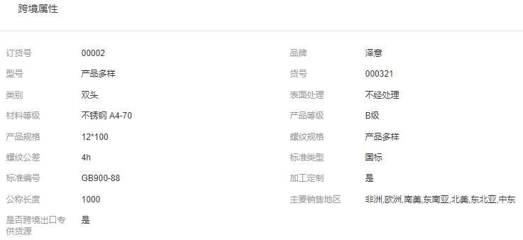 本网页所展示的有关【厂家生产 304不锈钢双头螺栓 201全螺纹螺柱 GB901不锈钢双头螺丝_螺栓_邯郸市锦傲金属制品有限公司】的信息/图片/参数等由全球零部件网的会员【邯郸市锦傲金属制品有限公司】提供,由全球零部件网会员【邯郸市锦傲金属制品有限公司】自行对信息/图片/参数等的真实性、准确性和合法性负责,本平台(本网站)仅提供展示服务,请谨慎交易,因交易而产生的法律关系及法律纠纷由您自行协商解决,本平台(本网站)对此不承担任何责任。您在本网页可以浏览【厂家生产 304不锈钢双头螺栓 201全螺纹螺柱 GB901不锈钢双头螺丝_螺栓_邯郸市锦傲金属制品有限公司】有关的信息/图片/价格等及提供【厂家生产 304不锈钢双头螺栓 201全螺纹螺柱 GB901不锈钢双头螺丝_螺栓_邯郸市锦傲金属制品有限公司】的商家公司简介、江南(中国)等信息。