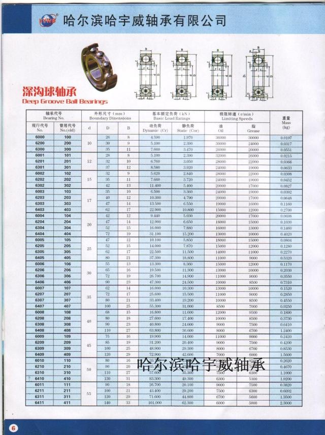 深沟球轴承 6200-6230 6300-6330 6406-6415 6000-6040