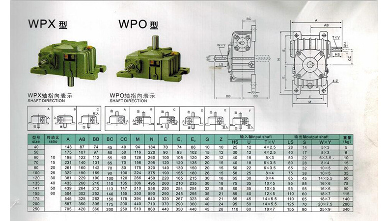 WP系列减速机,蜗杆采用45#钢经热处理加工制造,蜗轮用锡青铜铸制而成,抗磨性能良好,尤其在承载能力上较为明显,主要适用于塑料、冶金、饮料、矿山、起重运输、化工建筑等各种机械设备的减速传动。