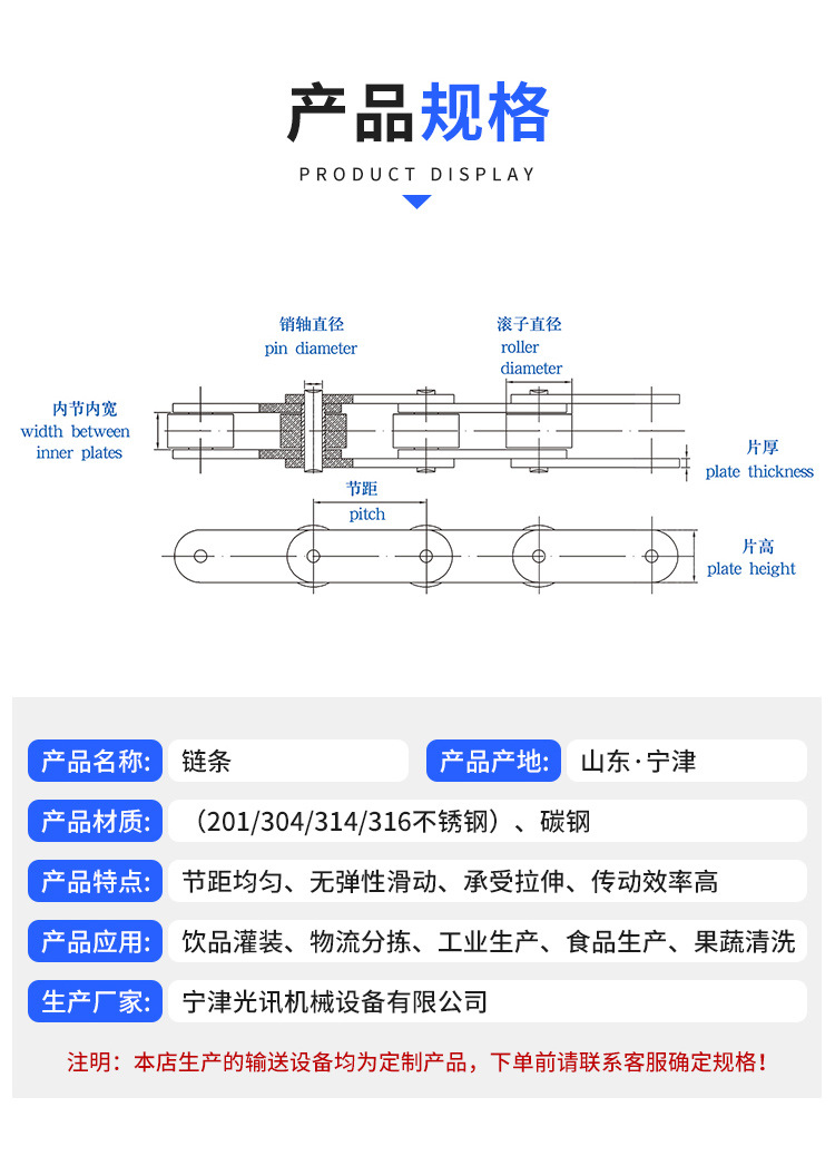 本网页所展示的有关【304不锈钢链条工业滚子链输送带 弯板链条单侧传动链非标链条厂家_链条_宁津光讯机械设备有限公司】的信息/图片/参数等由全球零部件网的会员【宁津光讯机械设备有限公司】提供,由全球零部件网会员【宁津光讯机械设备有限公司】自行对信息/图片/参数等的真实性、准确性和合法性负责,本平台(本网站)仅提供展示服务,请谨慎交易,因交易而产生的法律关系及法律纠纷由您自行协商解决,本平台(本网站)对此不承担任何责任。您在本网页可以浏览【304不锈钢链条工业滚子链输送带 弯板链条单侧传动链非标链条厂家_链条_宁津光讯机械设备有限公司】有关的信息/图片/价格等及提供【304不锈钢链条工业滚子链输送带 弯板链条单侧传动链非标链条厂家_链条_宁津光讯机械设备有限公司】的商家公司简介、江南(中国)等信息。