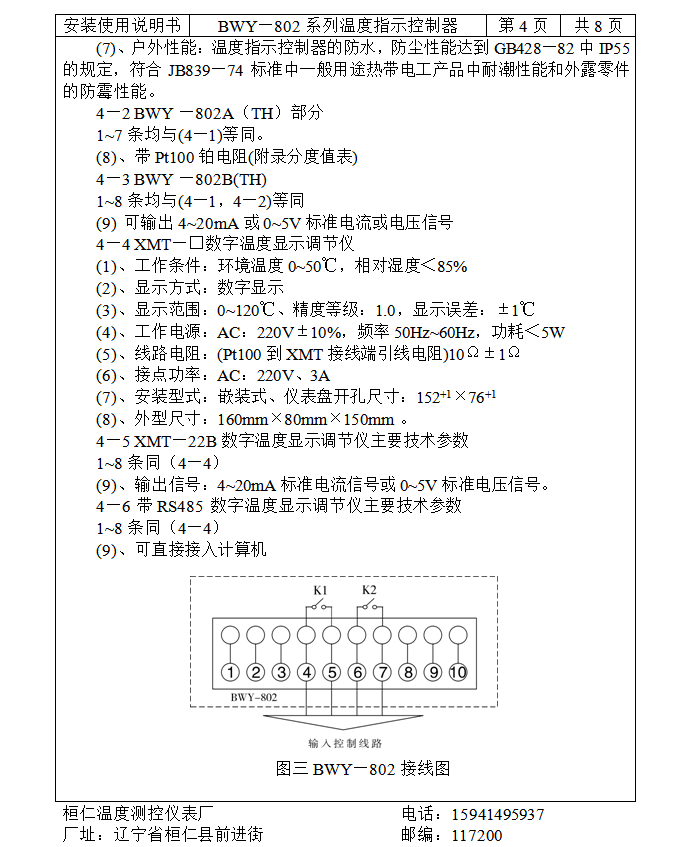 BWY—802的标准设定点:K1=55℃、K2=80℃