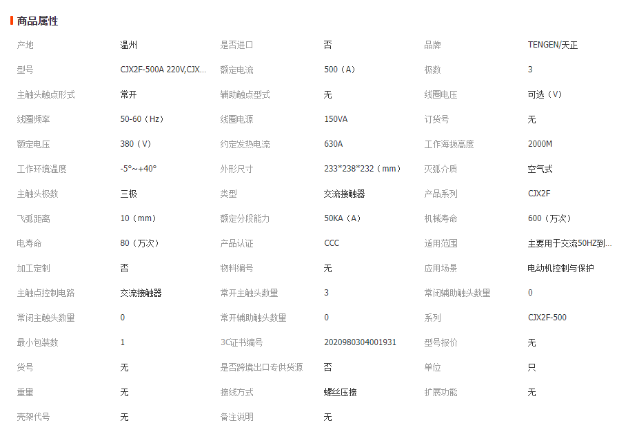 本网页所展示的有关【TENGEN天正 CJX2F-500A交流接触器 CDC6-500 NC2-500 220V 380V_接触器_河南西蒙电气有限公司】的信息/图片/参数等由全球零部件网的会员【河南西蒙电气有限公司】提供,由全球零部件网会员【河南西蒙电气有限公司】自行对信息/图片/参数等的真实性、准确性和合法性负责,本平台(本网站)仅提供展示服务,请谨慎交易,因交易而产生的法律关系及法律纠纷由您自行协商解决,本平台(本网站)对此不承担任何责任。您在本网页可以浏览【TENGEN天正 CJX2F-500A交流接触器 CDC6-500 NC2-500 220V 380V_接触器_河南西蒙电气有限公司】有关的信息/图片/价格等及提供【TENGEN天正 CJX2F-500A交流接触器 CDC6-500 NC2-500 220V 380V_接触器_河南西蒙电气有限公司】的商家公司简介、江南(中国)等信息。