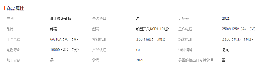 温馨提示如产品质量有问题请及时与我们联系,我厂无条件支持退货换货!厂家简介乐清市都泰电子厂,是一家专业生产销售开关,插座等电子元件的生产厂家,产品广泛应用于家用电器,小家电,玩具,医疗设备,机械设备,电动工具,等各类电子设备。本厂船型开关一般都是袋装和盒装 手机;15381506063;QQ;2083189533