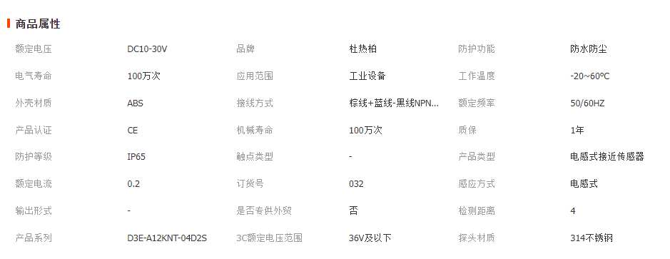本网页所展示的有关【电感式接近开关D3E-A12KNT-04D2S三线金属PNP传感器感应接近开关_电源开关及按钮_温州杜热柏电气科技有限公司】的信息/图片/参数等由全球零部件网的会员【温州杜热柏电气科技有限公司】提供,由全球零部件网会员【温州杜热柏电气科技有限公司】自行对信息/图片/参数等的真实性、准确性和合法性负责,本平台(本网站)仅提供展示服务,请谨慎交易,因交易而产生的法律关系及法律纠纷由您自行协商解决,本平台(本网站)对此不承担任何责任。您在本网页可以浏览【电感式接近开关D3E-A12KNT-04D2S三线金属PNP传感器感应接近开关_电源开关及按钮_温州杜热柏电气科技有限公司】有关的信息/图片/价格等及提供【电感式接近开关D3E-A12KNT-04D2S三线金属PNP传感器感应接近开关_电源开关及按钮_温州杜热柏电气科技有限公司】的商家公司简介、江南(中国)等信息。