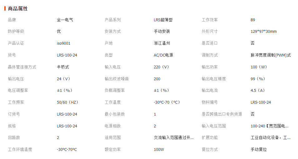 本网页所展示的有关【LRS-100W-24V超薄型开关电源安防监控电源 24V电源_电源开关及按钮_全一电气有限公司】的信息/图片/参数等由全球零部件网的会员【全一电气有限公司】提供,由全球零部件网会员【全一电气有限公司】自行对信息/图片/参数等的真实性、准确性和合法性负责,本平台(本网站)仅提供展示服务,请谨慎交易,因交易而产生的法律关系及法律纠纷由您自行协商解决,本平台(本网站)对此不承担任何责任。您在本网页可以浏览【LRS-100W-24V超薄型开关电源安防监控电源 24V电源_电源开关及按钮_全一电气有限公司】有关的信息/图片/价格等及提供【LRS-100W-24V超薄型开关电源安防监控电源 24V电源_电源开关及按钮_全一电气有限公司】的商家公司简介、江南(中国)等信息。