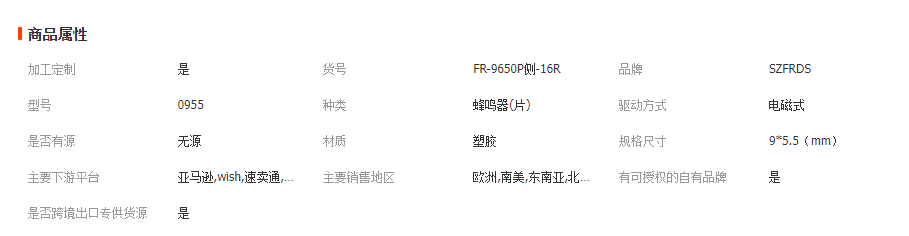 本网页所展示的有关【芙蓉电声0955 9650一体16欧无源交流AC 电磁式侧发声蜂鸣器BUZZER_蜂鸣器_深圳市芙蓉电声科技有限公司】的信息/图片/参数等由全球零部件网的会员【深圳市芙蓉电声科技有限公司】提供,由全球零部件网会员【深圳市芙蓉电声科技有限公司】自行对信息/图片/参数等的真实性、准确性和合法性负责,本平台(本网站)仅提供展示服务,请谨慎交易,因交易而产生的法律关系及法律纠纷由您自行协商解决,本平台(本网站)对此不承担任何责任。您在本网页可以浏览【芙蓉电声0955 9650一体16欧无源交流AC 电磁式侧发声蜂鸣器BUZZER_蜂鸣器_深圳市芙蓉电声科技有限公司】有关的信息/图片/价格等及提供【芙蓉电声0955 9650一体16欧无源交流AC 电磁式侧发声蜂鸣器BUZZER_蜂鸣器_深圳市芙蓉电声科技有限公司】的商家公司简介、江南(中国)等信息。