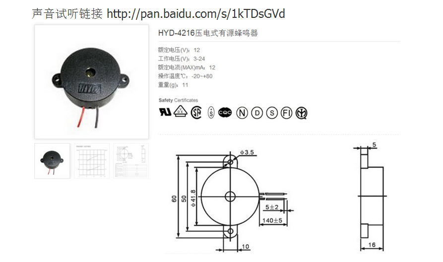 本网页所展示的有关【厂价直销报警蜂鸣器BUZZER3-24V 压电有源蜂鸣器HYD-4216QCPASS_蜂鸣器_兴化市宏宇电子有限公司】的信息/图片/参数等由全球零部件网的会员【兴化市宏宇电子有限公司】提供,由全球零部件网会员【兴化市宏宇电子有限公司】自行对信息/图片/参数等的真实性、准确性和合法性负责,本平台(本网站)仅提供展示服务,请谨慎交易,因交易而产生的法律关系及法律纠纷由您自行协商解决,本平台(本网站)对此不承担任何责任。您在本网页可以浏览【厂价直销报警蜂鸣器BUZZER3-24V 压电有源蜂鸣器HYD-4216QCPASS_蜂鸣器_兴化市宏宇电子有限公司】有关的信息/图片/价格等及提供【厂价直销报警蜂鸣器BUZZER3-24V 压电有源蜂鸣器HYD-4216QCPASS_蜂鸣器_兴化市宏宇电子有限公司】的商家公司简介、江南(中国)等信息。