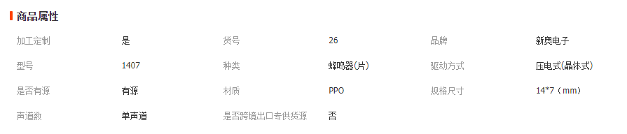 本网页所展示的有关【压电一体有源蜂鸣器家电控制板专用压电耐高温1407插针蜂鸣器_蜂鸣器_常州市新奥电子有限公司】的信息/图片/参数等由全球零部件网的会员【常州市新奥电子有限公司】提供,由全球零部件网会员【常州市新奥电子有限公司】自行对信息/图片/参数等的真实性、准确性和合法性负责,本平台(本网站)仅提供展示服务,请谨慎交易,因交易而产生的法律关系及法律纠纷由您自行协商解决,本平台(本网站)对此不承担任何责任。您在本网页可以浏览【压电一体有源蜂鸣器家电控制板专用压电耐高温1407插针蜂鸣器_蜂鸣器_常州市新奥电子有限公司】有关的信息/图片/价格等及提供【压电一体有源蜂鸣器家电控制板专用压电耐高温1407插针蜂鸣器_蜂鸣器_常州市新奥电子有限公司】的商家公司简介、江南(中国)等信息。