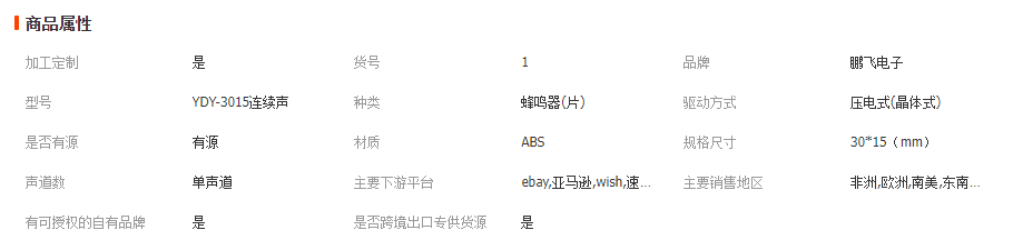本网页所展示的有关【厂家批发压电有源蜂鸣器3015带引线白壳黑壳3V-24V压电式蜂鸣器_蜂鸣器_宿州市鹏飞电子有限公司】的信息/图片/参数等由全球零部件网的会员【宿州市鹏飞电子有限公司】提供,由全球零部件网会员【宿州市鹏飞电子有限公司】自行对信息/图片/参数等的真实性、准确性和合法性负责,本平台(本网站)仅提供展示服务,请谨慎交易,因交易而产生的法律关系及法律纠纷由您自行协商解决,本平台(本网站)对此不承担任何责任。您在本网页可以浏览【厂家批发压电有源蜂鸣器3015带引线白壳黑壳3V-24V压电式蜂鸣器_蜂鸣器_宿州市鹏飞电子有限公司】有关的信息/图片/价格等及提供【厂家批发压电有源蜂鸣器3015带引线白壳黑壳3V-24V压电式蜂鸣器_蜂鸣器_宿州市鹏飞电子有限公司】的商家公司简介、江南(中国)等信息。