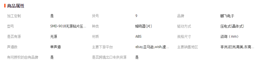 本网页所展示的有关【厂家批发无源贴片SMD-9018压电蜂鸣器 无源5V贴片蜂鸣器_蜂鸣器_宿州市鹏飞电子有限公司】的信息/图片/参数等由全球零部件网的会员【宿州市鹏飞电子有限公司】提供,由全球零部件网会员【宿州市鹏飞电子有限公司】自行对信息/图片/参数等的真实性、准确性和合法性负责,本平台(本网站)仅提供展示服务,请谨慎交易,因交易而产生的法律关系及法律纠纷由您自行协商解决,本平台(本网站)对此不承担任何责任。您在本网页可以浏览【厂家批发无源贴片SMD-9018压电蜂鸣器 无源5V贴片蜂鸣器_蜂鸣器_宿州市鹏飞电子有限公司】有关的信息/图片/价格等及提供【厂家批发无源贴片SMD-9018压电蜂鸣器 无源5V贴片蜂鸣器_蜂鸣器_宿州市鹏飞电子有限公司】的商家公司简介、江南(中国)等信息。