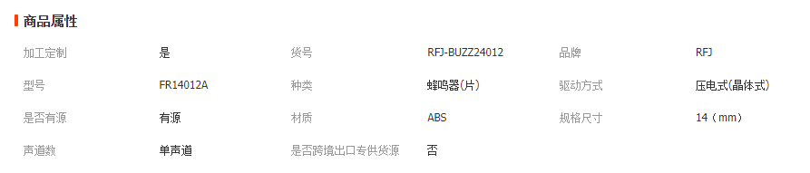 本网页所展示的有关【门铃、报警器用蜂鸣器(压电式有源连续声-断续声)_蜂鸣器_深圳市瑞丰捷电子有限公司】的信息/图片/参数等由全球零部件网的会员【深圳市瑞丰捷电子有限公司】提供,由全球零部件网会员【深圳市瑞丰捷电子有限公司】自行对信息/图片/参数等的真实性、准确性和合法性负责,本平台(本网站)仅提供展示服务,请谨慎交易,因交易而产生的法律关系及法律纠纷由您自行协商解决,本平台(本网站)对此不承担任何责任。您在本网页可以浏览【门铃、报警器用蜂鸣器(压电式有源连续声-断续声)_蜂鸣器_深圳市瑞丰捷电子有限公司】有关的信息/图片/价格等及提供【门铃、报警器用蜂鸣器(压电式有源连续声-断续声)_蜂鸣器_深圳市瑞丰捷电子有限公司】的商家公司简介、江南(中国)等信息。